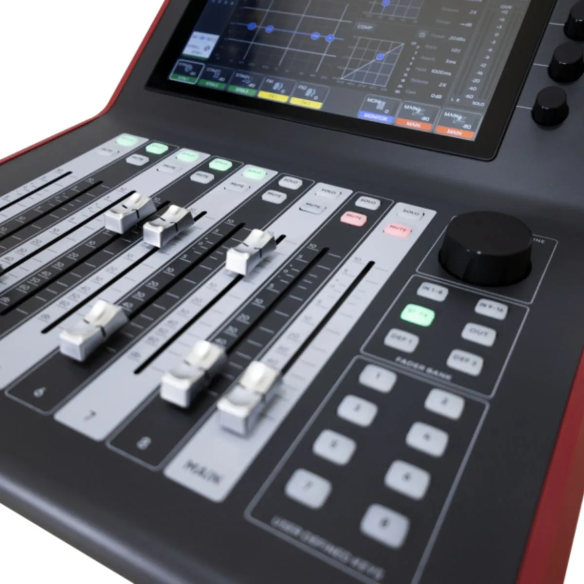 Projetada para palcos, igrejas, estúdios e eventos ao vivo, ela possui tela touchscreen de 10,1″, garantindo operação intuitiva e rápida, mesmo em situações profissionais exigentes.