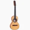 Laterais, fundo, escala e cavalete em jacarandá, combinando durabilidade e projeção sonora clássica.